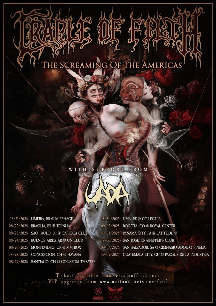 La legendaria banda británica de metal extremo, Cradle of Filth, se presentará por primera vez en Panamá el próximo 4 de septiembre de 2025. El concierto tendrá lugar en Latitude 47 a las 8:00 p.m. Los boletos estarán disponibles a través de Ticketplus. Este evento es posible gracias a la producción de The Eclectic Agency.